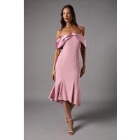 Elegant bardot neckline with dramatic satin overlay creating a sophisticated off-shoulder silhouette Figure-enhancing scuba fabric with gentle stretch for comfort and structure Tailored midi length with graceful fishtail hem for refined movement Sleek centre back zip fastening for a streamlined fit Contoured seam detailing that sculpts and flatters the feminine form This striking Satin Sleeve Scuba Midi Dress from Coast exemplifies modern elegance with its architectural bardot neckli... - Manufacturers part number: Coast_5045770974972