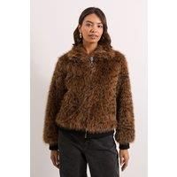 Striking tiger pattern faux fur jacket with plush texture and full-length sleeves Collared neckline adding structure and sophistication to this statement piece Zip-through front closure with metallic ring pull for easy wear Ribbed cuffs and hem creating a flattering silhouette and added warmth Cropped length perfect for layering over various outfits Make a bold fashion statement with this eye-catching Tiger Faux Fur Collared Jacket from Dorothy Perkins. The cropped silhouette pairs beautifully with high-waisted trousers as styled in the image, creating a balanced and contemporary look. This versatile piece transitions effortlessly from casual daywear to weekend brunches with friends. Layer over a simple white tee and your favourite jeans for coffee dates, or style with wide-leg trousers and ankle boots for family gatherings. The textured pattern adds visual interest to any ensemble whilst the practical zip closure ensures easy wear. Perfect for adding warmth and character to your autum...