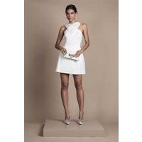 Elegant halterneck design with crossover neckline detail for a sophisticated bridal silhouette Luxurious satin fabric creates a smooth, refined finish perfect for your special day Striking statement bow back adorned with delicate sequin detailing for a touch of glamour Mini length offers a contemporary twist on traditional bridal wear Clean, minimalist front contrasts beautifully with the dramatic back detail Make a memorable entrance on your wedding day with this stunning Coast mini dress that beautifully balances modern style with bridal elegance. The sophisticated halterneck design frames the dcolletage whilst the clean lines of the front create a sleek canvas that lets the showstopping bow back take centre stage. Style with crystal-embellished heels and a compact clutch as shown for a contemporary bridal look that photographs beautifully from every angle. The sequin-adorned bow detail catches the light as you move, adding subtle sparkle to your celebration. Perfect for civil ceremo...