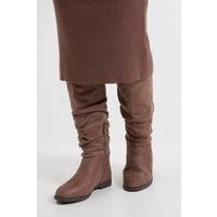 Wide Fit Karina Faux Suede Flat Knee High Ruched Boots | Dorothy Perkins Women's Wide Fit Karina Faux Suede Flat Knee High Ruched Boots in Taupe | Size: 3 - Manufacturers part number: Dorothy Perkins_5045771023488