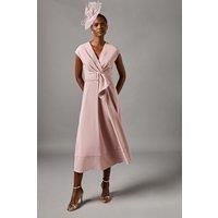 Elegant V-neckline for a flattering silhouette Wrap-style bodice with a cinched waist Striking belted detail with a rectangular buckle Cap sleeves for a graceful arm-flattering look Midi length with a flared A-line skirt This sophisticated belted crepe dress from Coast is the epitome of refined elegance. Perfect for those special occasions where you want to make a lasting impression, this dress combines timeless style with modern flair. The wrap-style bodice creates a flattering silh...