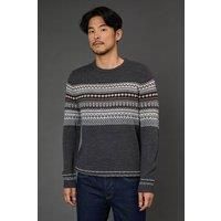 Charcoal Fairisle Placement Crew Neck Jumper