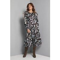 Luxurious Satin Jacquard Fabric With Elegant Floral Pattern Throughout Feminine Ruffle Detailing Along The Shoulders And Bodice For Added Dimension Sophisticated Midi Length With Flowing Silhouette That Flatters The Figure Long Sleeves With Subtle Volume For A Graceful Appearance Delicate Tie Detail At The Back Neckline For An Elegant Finishing Touch This Enchanting Floral Satin Jacquard Ruffle Midi Dress From Wallis Presents A Perfect Harmony Of Sophistication And Femininity. The Lustrous Jacquard Fabric Creates A Sumptuous Texture That Catches The Light Beautifully, Whilst The Strategic Ruffle Detailing Adds Movement And Dimension To Your Silhouette. The Crew Neckline Provides A Classic Foundation For Statement Jewellery, As Shown With The Model'S Choice Of Bold Earrings. Style With Knee-High Suede Boots For Autumn Sophistication, Or Pair With Strappy Heels And A Clutch Bag For Formal Occasions Such As Weddings Or Race Days. The Midi Length Of...