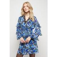 Feminine V-neckline adorned with delicate lace trim detail Romantic frill sleeves with multi-tiered ruffles for added movement Flattering elasticated waist creating a defined silhouette Mini length design perfect for showcasing your legs All-over floral print capturing Oasis's signature feminine aesthetic This charming mini dress from Oasis embodies effortless daytime style with its playful frilled sleeves and pretty lace detailing. The V-neckline frames the dcolletage beautifully, whilst the elasticated waist creates a flattering shape that complements all figures. Style with black tights and knee-high boots as seen on our model for a perfect autumn ensemble, or pair with white trainers and a denim jacket for casual weekend brunches. The versatile design transitions seamlessly from family gatherings to coffee dates with friends. For cooler days, layer with a chunky cardigan and add a crossbody bag to complete your look. This dress captures the essence of Oasis's feminine spirit whilst...