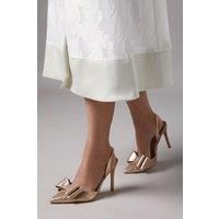 Elegant slingback design with adjustable strap for a secure fit Luxurious satin bow detail adds a sophisticated finishing touch Pointed toe silhouette creates a flattering, elongated look High stiletto heel measures between 7-9cm for statement height Wide fit construction offers additional comfort for special occasions The Tamara court shoes exemplify Coast's signature sophistication with their metallic textile finish and exquisite satin bow embellishment. Designed with a wide fit f... - Manufacturers part number: Coast_5045771073322