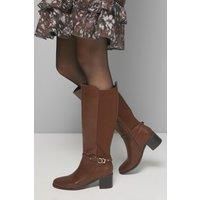 Sleek knee-high boots with elegant mid block heel measuring between 5-6.5cm for comfortable all-day wear Stretchy back panel design ensures a comfortable fit around the calf Decorative gold-tone buckle detail adds a sophisticated touch Side zip fastening for easy on and off access Versatile round toe silhouette complements a variety of outfits The Hills Faux Leather Knee Boots from Wallis combine sophistication with practicality for the woman who values both style and comfort. The mid block heel provides stability whilst maintaining an elegant profile, perfect for those busy days when you're on your feet. The stretchy back panel accommodates different calf sizes, ensuring these boots fit beautifully. Style them with a tailored A-line skirt and opaque tights for a polished daytime look, or pair with slim-fit trousers tucked in for casual family gatherings. The versatile design transitions effortlessly from office to weekend brunch, whilst the gold-tone hardware adds just the right amoun...