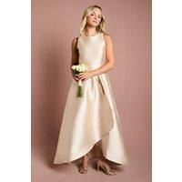 Elegant waterfall hem creating a dramatic asymmetric silhouette Sleek high neckline and sleeveless design for a contemporary look Structured twill fabric offering beautiful drape and movement Fitted bodice transitioning into a voluminous skirt for a flattering shape Clean-lined back with discreet fastening for seamless styling The Coast Twill Waterfall Bridesmaids Dress embodies sophisticated elegance with its modern asymmetric hemline and refined silhouette. The structured bodice cr...