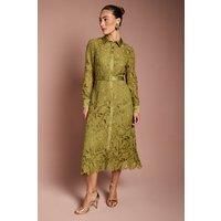 Exquisite all-over lace design for a luxurious look Collared neckline adds a sophisticated touch Long sleeves provide elegant coverage Midi length offers versatile styling options Matching belt accentuates the waistline Make a striking entrance at your next special occasion with this stunning lace shirt dress from Coast. The intricate lace pattern adorns the entire garment, creating a captivating texture that's sure to turn heads. The classic collared neckline and long sleeves lend ... - Manufacturers part number: Coast_5045771210642