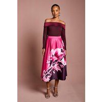Luxurious satin finish with stunning placement floral print Elegant midi length perfect for petite frames Flattering A-line silhouette with pleated waist detail High-waisted design for a feminine shape Fully lined for comfort and smooth drape Make a statement at your next special occasion with this exquisite satin midi skirt from Coast. The eye-catching placement print creates a dramatic focal point, while the lustrous satin fabric catches the light beautifully as you move. The high-waisted design and pleated detailing create a flattering silhouette that works wonderfully for petite frames. Style as shown with an off-shoulder top and metallic heels for a sophisticated wedding guest ensemble, or pair with a tailored blouse and court shoes for race day elegance. The versatile midi length makes this skirt appropriate for a range of formal settings, from garden parties to evening receptions. The rich tones and artistic floral motif reflect Coast's signature attention to detail, ensuring yo... - Manufacturers part number: Coast_5045771214442