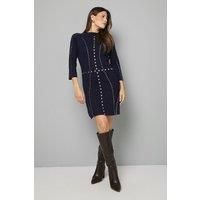 Striking Stud Detailing Creates A Flattering Silhouette With Vertical And Horizontal Patterns Comfortable Knitted Fabric Offers A Figure-Hugging Fit With Gentle Stretch Three-Quarter Length Sleeves Provide Versatile Year-Round Wearability Classic Crew Neckline Offers A Sophisticated And Universally Flattering Look Knee-Length Cut Strikes The Perfect Balance Between Modesty And Style This Eye-Catching Wallis Knitted Dress Combines Comfort With Glamour Through Its Distinctive Stud Embellishment. The Thoughtfully Placed Metallic Details Create Visual Interest While Contouring Your Silhouette Beautifully. Style With Knee-High Boots As Shown For Casual Family Gatherings Or Weekend Brunches With Friends. For A Sophisticated Daytime Look, Pair With A Tailored Blazer And Ankle Boots. The Versatile Design Transitions Effortlessly From Office To Evening Drinks - Simply Swap Your Day Bag For A Clutch And Add Statement Earrings. The Soft Knitted Fabric Ensu...