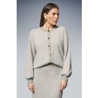 Luxurious tufted texture with subtle metallic thread detailing for a sophisticated shimmer Elegant collared neckline with statement gold-tone button fastening Voluminous balloon sleeves with ribbed cuffs for a contemporary silhouette Cropped length design perfect for high-waisted styling Versatile knitted construction offering both warmth and style This Wallis cardigan combines comfort with glamour through its sumptuous tufted texture and delicate metallic threading. The cropped silhouette pairs beautifully with the matching midi skirt as shown, creating an effortlessly coordinated ensemble for daytime sophistication. Style with simple court shoes and a structured clutch for family gatherings or weekend brunches. For a more casual approach, layer over a fitted top with tailored trousers and flat pumps. The balloon sleeves add a contemporary touch to this versatile piece, while the gold-tone buttons enhance its refined aesthetic. Perfect for transitional weather, this cardigan works won...