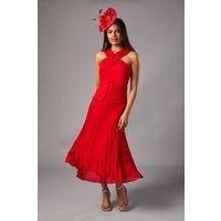 Elegant cross-over neckline for a sophisticated look Flattering belted waist to accentuate your silhouette Pleated midi skirt for graceful movement Sleeveless design perfect for warm-weather occasions Stylish square back detail adds a modern touch This stunning midi dress from Coast is the epitome of refined elegance. The cross-over neckline creates a flattering V-shape, while the belted waist cinches in to define your figure beautifully. The pleated skirt falls gracefully to mid-cal...