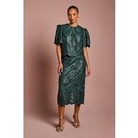 Luxurious PU midi skirt featuring intricate lace overlay with botanical pattern Elegant scalloped hem detail adds a refined finishing touch Figure-flattering silhouette with a sophisticated midi length Designed specifically for petite frames for perfect proportions Semi-sheer lace detailing creates a striking textural contrast This exquisite Petite PU Lace Midi Skirt from Coast combines contemporary style with timeless elegance. The striking botanical lace overlay creates a captivating visual texture whilst the scalloped hem adds a touch of femininity to this sophisticated piece. Perfect for special occasions, this skirt pairs beautifully with a simple silk camisole and strappy metallic heels as shown for a wedding guest ensemble that commands attention. For race day events, complement with a tailored blazer and fascinator for a look that balances tradition with modern flair. The midi length is particularly flattering on petite frames, whilst the PU fabrication offers structure and dur... - Manufacturers part number: Coast_5045771350058