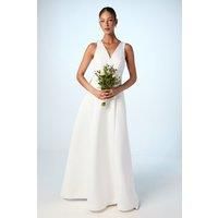 Elegant plunge V neckline at both front and back for a sophisticated silhouette Luxurious satin fabric with a subtle sheen that catches the light beautifully Statement bow detail at the back adds a romantic, feminine touch Floor-sweeping maxi length creates a graceful, statuesque appearance Practical side pockets discreetly integrated into the flowing design Make a breathtaking entrance on your special day with this stunning Coast wedding dress. The clean, minimalist design showcases...