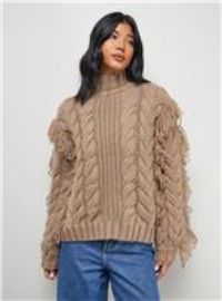 Striking cable knit pattern with dramatic fringe detailing along the sleeves and shoulders Cosy crew neckline with ribbed trim for added comfort and structure Cross back design adds an unexpected twist to this textured jumper Relaxed silhouette perfect for effortless layering Chunky knit construction offers warmth without compromising on style Make a statement with this boldly textured Fringe Cross Back Cable Jumper from Warehouse. The eye-catching cable knit pattern is elevated by playful fringe detailing that creates movement with every step. The cross back design offers a contemporary twist to this otherwise classic piece, making it anything but ordinary. Style with wide-leg denim jeans and chunky boots for a casual weekend look with attitude, or pair with a leather midi skirt and trainers for an edgier daytime ensemble. This versatile jumper works brilliantly for coffee dates, shopping trips or casual family gatherings. Layer over a simple vest top on cooler days, and add a crossbo...