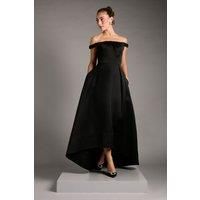 Elegant bardot neckline with off-shoulder design for a sophisticated silhouette Dramatic high-low hem creating a sweeping train effect at the back Fit and flare shape that cinches at the waist for a flattering profile Luxurious satin fabric that catches the light beautifully Practical side pockets discreetly integrated into the full skirt Make a striking entrance at your next formal occasion with this show-stopping bardot maxi dress from Coast. The classic off-shoulder neckline frames your dcolletage beautifully, whilst the fit and flare silhouette creates an hourglass shape that flatters all figures. The high-low hem adds drama and movement as you walk, perfect for making an impression at weddings or black-tie events. Style with statement earrings and a sleek updo as seen on our model, adding a structured clutch for a polished finish. For cooler evenings, drape a lightweight pashmina over your shoulders. The hidden pockets offer practical elegance, allowing you to keep essentials clos...