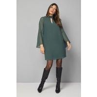 Elegant high neck design with stunning embellished detailing for a touch of glamour Sophisticated keyhole front opening adds a contemporary twist to this classic shift silhouette Dramatic bell sleeves with sheer overlay create movement and visual interest Relaxed shift cut offers comfortable wear whilst maintaining a refined silhouette Versatile knee-length design perfect for both daytime and evening occasions This enchanting shift dress from Wallis combines timeless sophistication with modern detailing. The embellished high neckline creates an immediate focal point, whilst the flowing bell sleeves add a touch of drama to your ensemble. Pair with opaque tights and ankle boots for an elegant daytime look, or style with strappy heels and a clutch bag for evening events. The relaxed silhouette ensures comfort throughout any formal occasion, from weddings to race days, whilst the keyhole detail adds a subtle hint of allure. Layer with a tailored blazer for cooler evenings or wear as is to ...