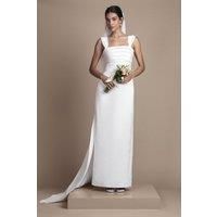 Elegant column silhouette with clean, minimalist lines for a contemporary bridal aesthetic Luxurious satin and ponte fabric combination offering structure with comfortable stretch Sophisticated square neckline with wide shoulder straps for elegant support Beautifully pleated bodice detail creating visual interest and texture Dramatic flowing train that adds movement and grandeur to your walk down the aisle This striking Satin and Ponte Column Wedding Dress from Coast embodies modern ...