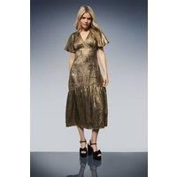 Striking metallic satin fabric that catches the light beautifully Elegant cape sleeves for a sophisticated silhouette Flattering V-neckline that frames the dcolletage Midaxi length with a gathered tier detail at the hem Fully lined for comfort and structure Make a statement at your next special occasion with this Dorothy Perkins Luxe Cape Sleeve Midaxi Dress. The eye-catching metallic finish creates a luxurious look whilst maintaining the brand's signature wearable style. The flowing cape sleeves offer just the right amount of coverage, perfect for those who prefer not to show too much skin. Style with platform heels as shown for added height, or pair with strappy sandals for a more relaxed approach. This versatile piece transitions effortlessly from daytime celebrations like baby showers and brunches with friends to evening soires. Complete your ensemble with minimal jewellery to let the dress shine, and add a clutch bag for a polished finish. The midaxi length ensures both comfort an...