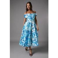 You name the occasion, we have the perfect dress. From maxi to mini and everything in between, find your dream dress to feel confident in. Choose classic shift dresses and flowing floor-length pieces for a timeless style, plus discover on-trend bardot and wrap dresses to wear on repeat. Style: Stripe Organza Pleated Top Midi Dress. Ideal for: Occasion. Model wears size UK 10 and is 5' 9" tall. | Coast Women's Stripe Organza Pleated Top Floral Print Midi Dress in Blue | Size: 16