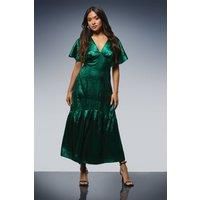 • Striking metallic satin fabric that catches the light beautifully Elegant cape sleeves for a sophisticated silhouette Flattering V-neckline that frames the dcolletage Midaxi length with a feminine tiered hem detail Designed specifically for petite frames for the perfect fit Part of the DP Luxe collection, this Dorothy Perkins midaxi dress combines timeless elegance with contemporary flair