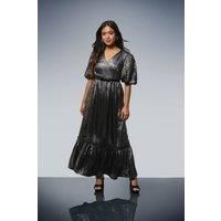 Luxurious metallic finish that catches the light beautifully Elegant V-neckline frames the dcolletage Dramatic puff sleeves add a contemporary touch Tiered maxi design with a flattering silhouette Petite fit ensures perfect proportions for smaller frames Make a statement at your next special occasion with this Dorothy Perkins Luxe tiered maxi dress. The eye-catching metallic finish creates a sophisticated shimmer that's perfect for evening events, while the puff sleeves add a fashionable volume that balances the flowing tiered skirt. The V-neckline offers a flattering frame without revealing too much, ideal for baby showers or celebratory brunches with friends. Style with strappy heels as shown for a polished party look, or dress down with a cropped jacket and ankle boots for more casual gatherings. The maxi length provides elegant coverage while the tiered design creates movement and dimension. This versatile piece transitions effortlessly from daytime celebrations to evening affairs,...