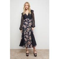 Elegant midi dress featuring a stunning mix of delicate lace and floral print panels Romantic V-neckline with sheer lace bodice and billowy long sleeves Flattering empire waistline that creates a feminine silhouette Flowing A-line skirt with alternating lace and floral print sections Fully lined for comfort and coverage whilst maintaining the delicate appearance of the lace overlay This enchanting Oasis Lace Mix Midi Dress combines timeless femininity with contemporary design. The intricate lace bodice with its voluminous sleeves creates a romantic aesthetic, whilst the floral printed panels add a touch of Oasis's signature prettiness. Perfect for special occasions, this dress makes a graceful statement at weddings, garden parties or race day events. Style as shown with platform heeled sandals for added height and elegance, or pair with metallic accessories for evening soires. The midi length offers versatility for various formal settings, whilst the mixed-material design ensures you'l...