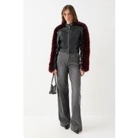 Statement faux fur sleeves create a bold, textural contrast against the sleek PU body Boxy fit with a cropped silhouette perfect for highlighting high-waisted bottoms Crew neckline and front zip fastening for an authentic moto-inspired look Functional side pockets with metallic zip detailing add practical edge Versatile design that works equally well for day or evening casual wear Make a striking entrance in this head-turning moto jacket featuring dramatic faux fur sleeves. The boxy, cropped silhouette ...