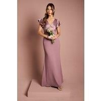 Elegant V-neckline for a flattering silhouette Graceful angel sleeves with delicate ruffles Luxurious satin fabric for a smooth, glossy finish Floor-length design with a subtle flare Cinched waist with a tie-back detail for a customised fit This enchanting bridesmaids dress from Coast is the epitome of sophistication and grace. The V-neckline beautifully frames the dcolletage, while the angel sleeves add a touch of whimsy and romance. The satin fabric drapes elegantly, creating a sle...