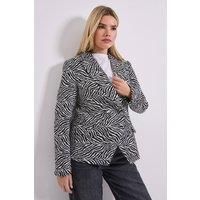 Eye-catching zebra print pattern for a bold statement piece Double-breasted design with button fastening for a structured silhouette Regular fit with notched lapels for a classic tailored look Long sleeves with subtle shoulder padding for a refined shape Versatile woven fabric that maintains its structure throughout the day Make a striking impression at your next formal occasion with this distinctive zebra printed double breasted blazer from Dorothy Perkins. The classic tailoring meets contemporary pattern for a piece that commands attention whilst maintaining sophistication. Style with dark denim and a crisp white top for brunch with friends, or pair with tailored trousers and heels for graduations and race day events. The regular fit ensures comfort without compromising on style, making it perfect for those who appreciate fashion with function. This blazer transitions effortlessly from day to evening, working beautifully for baby showers or dinner dates. The structured silhouette fla...