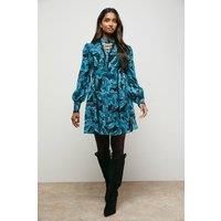Striking high neck design with elegant lace-up detail at the front Voluminous long sleeves with gathered cuffs for a feminine silhouette Bold botanical print throughout adds visual interest and dimension Mini length perfect for showcasing your favourite footwear Flattering A-line shape that skims the body beautifully This eye-catching mini dress from Oasis combines contemporary styling with classic feminine details. The distinctive lace-up front and high neckline create a sophisticated focal point, while the billowing long sleeves add drama and movement to your look. The dress's fluid silhouette is universally flattering, making it a versatile addition to your daywear collection. Style with over-the-knee boots as shown for casual family gatherings, or pair with chunky trainers and a denim jacket for weekend brunches. For a more polished daytime ensemble, team with opaque tights and ankle boots, finishing with a tailored coat. This dress works beautifully for various casual occasions wh...