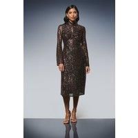 Elegant high neck design with a subtle front keyhole detail for a sophisticated touch All-over sequin embellishment that catches the light beautifully with every movement Flattering midi length that falls just below the knee for a timeless silhouette Long sleeves provide coverage whilst maintaining a glamorous evening aesthetic Streamlined fit that contours the body for a refined and polished look Make a statement at your Christmas celebration in this show-stopping sequin midi dress from Wallis. The high neckline with delicate keyhole detail offers a contemporary twist on festive glamour, whilst the all-over sequin embellishment ensures you'll shine throughout the evening. Style with strappy metallic heels and statement earrings as shown for maximum impact at formal occasions. The midi length provides an elegant canvas for showcasing your favourite evening footwear, whilst the long sleeves offer welcome warmth during winter festivities. This dress transitions effortlessly from office C...