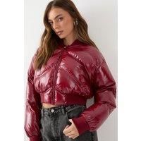 High shine finish for a bold, statement look Cropped length perfect for showcasing high-waisted bottoms Quilted chevron stitching detail adds texture and visual interest Ribbed cuffs for a snug fit and extra warmth Full front zip closure for versatile styling options Make a striking impression with this eye-catching cropped puffer coat from MissPap. The high shine finish creates a head-turning look that's perfect for those who love to stand out. The contemporary cropped silhouette sits perfectly at the...