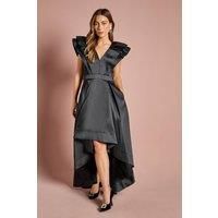 Exquisite frill sleeves add a touch of drama to this elegant midi dress Flattering V-neckline elongates the silhouette Crafted from twill fabric for a luxurious look and feel Dipped hem creates a striking asymmetric finish Concealed back zip fastening for a seamless fit Radiate sophistication at your next formal event in this stunning midi dress from Coast. The frill sleeves and V-neckline exude a refined femininity, while the dipped hem adds a contemporary twist. Style with sleek heels and a clutch for...
