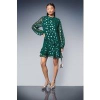 Luxurious star jacquard pattern creates a dazzling visual effect throughout the dress Elegant high neckline offers sophisticated coverage perfect for various occasions Sheer long sleeves with subtle volume add a touch of drama and femininity Playful ruffle hem detail creates movement and dimension to the shift silhouette Mini length showcases a modern approach to party dressing whilst maintaining elegance This Dorothy Perkins Luxe mini dress combines contemporary styling with classic refinement. The shift silhouette skims the figure beautifully, whilst the star jacquard fabric catches the light with every movement, creating a subtle yet striking effect. Perfect for your next special occasion, this dress works wonderfully for birthday celebrations, engagement parties or sophisticated evening events. Style as shown with metallic platform sandals and a compact clutch for a coordinated party look, or customise with block-heeled ankle boots and a cropped jacket for autumn gatherings. The hi...