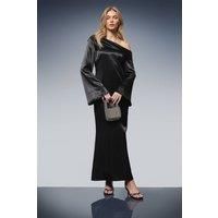 Elegant off-the-shoulder neckline creates a sophisticated silhouette Luxurious satin fabric catches the light beautifully with every movement Dramatic bell sleeves add a contemporary twist to this classic slip design Floor-length cut offers a graceful, flowing appearance Sleek, figure-skimming fit enhances your natural contours This stunning Oasis satin slip dress combines timeless elegance with modern design elements. The asymmetric off-the-shoulder neckline creates a captivating focal point, while the statement bell sleeves add dramatic flair to your formal ensemble. The fluid silhouette gracefully skims your figure, creating a refined look perfect for special occasions. Style with strappy heels and a beaded mini bag as shown for black-tie events or formal weddings. For race day elegance, pair with a fascinator and delicate jewellery. The versatile design transitions beautifully from daytime ceremonies to evening receptions, making it an essential addition to your occasion wardrobe. ...