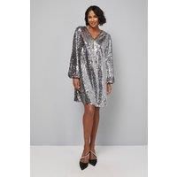 Dazzling all-over sequin embellishment for show-stopping glamour Elegant V-neckline frames the dcolletage beautifully Relaxed shift silhouette offers comfortable movement for dancing Long sleeves provide sophisticated coverage for evening events Versatile knee-length design suitable for various formal occasions Make a statement at your next soire with this captivating Wallis Mixed Sequin Shift Dress. The striking sequin embellishment catches and reflects light with every movement, ensuring you command attention wherever you go. The flattering V-neckline and relaxed shift silhouette combine sophistication with comfort, perfect for those who appreciate glamour without compromising on ease of wear. Style with pointed court shoes as shown for a classic evening look, or pair with strappy heeled sandals and a clutch bag for cocktail parties. Add statement earrings to complement the dress's inherent sparkle. This versatile piece transitions effortlessly from dinner dates to wedding receptions...