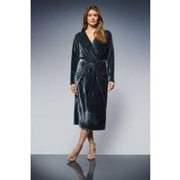 Sumptuous velvet fabric with a luxurious soft-touch finish Elegant wrap neckline creates a flattering V-shape Sophisticated knot detail at the waist adds definition Midi length design offers versatile styling options Long sleeves provide coverage whilst maintaining a refined silhouette Make a statement at your next evening soire with this captivating velvet midi dress from Wallis. The wrap neckline and artful knot detail work in harmony to create a figure-enhancing silhouette that's both sophisticated and comfortable. The midi length strikes the perfect balance between formal and approachable, making it an ideal choice for cocktail parties, dinner dates, or special celebrations. Style with metallic strappy heels as shown for a glamorous finish, and add statement earrings to complement the dress's elegant design. For cooler evenings, layer with a tailored blazer or delicate shawl without detracting from the dress's sumptuous texture. This versatile piece transitions effortlessly from au...