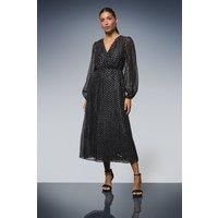 Elegant wrap neckline with flattering midi length silhouette Shimmering metallic spot pattern throughout for eye-catching appeal Flowing long sleeves with gathered cuffs for a sophisticated finish Defined waistline that creates a feminine, figure-enhancing shape Fully lined for comfort and a smooth drape against the skin Make a striking impression in this Wallis Metallic Spot Midi Dress, designed to capture attention at any evening soire. The wrap neckline frames your dcolletage beautifully, whilst the billowing sleeves add a touch of drama and movement to your silhouette. Perfect for cocktail parties or nights out on the town, this dress pairs wonderfully with strappy heels and a clutch bag for a complete look that radiates sophistication. The midi length offers versatility for various social settings, from upscale restaurants to stylish bars. For cooler evenings, layer with a tailored blazer without compromising on glamour. The metallic detailing catches the light as you move, ensuri...
