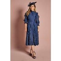 Exquisite lace detailing with intricate ruffle accents Collared neckline with button-down front Voluminous puff sleeves with delicate eyelet patterns Midi length with scalloped hem Matching fabric belt to cinch the waist This stunning lace ruffle shirt dress from Coast is a vision of elegance and sophistication. Perfect for those special occasions where you want to make a lasting impression, this dress combines classic elements with contemporary flair. The intricate lace pattern and ruffle details create a romantic silhouette, while the collared neckline and button-down front add a touch of refinement. Style this dress with strappy metallic heels and statement earrings for a polished look at weddings, garden parties, or race day events. For cooler evenings, drape a lightweight pashmina over your shoulders. The versatile midi length allows for easy movement, ensuring you'll feel as comfortable as you look graceful throughout any formal gathering. | Coast Women's Lace Ruffle Shirt Dress ... - Manufacturers part number: Coast_5045772361084
