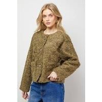 Luxuriously textured faux fur short coat with a plush, tactile finish Relaxed, boxy silhouette perfect for effortless layering Collarless design with round neckline for a contemporary look Secure front button fastening with subtle metallic details Cosy wide sleeves offering comfort and modern proportions This sumptuous faux fur coat from Oasis brings a touch of indulgence to your casual wardrobe. The cropped length creates a flattering silhouette that works beautifully with high-waisted jeans, as styled in the image with straight-leg denim and ankle boots for an effortlessly chic daytime look. The textured finish adds dimension and interest, making this piece a standout addition to your collection. Perfect for family gatherings, weekend brunches or casual coffee dates, this coat offers both warmth and style during cooler months. Layer over a simple white top for daytime elegance, or pair with a printed blouse and tailored trousers for more polished casual occasions. The versatile desig...
