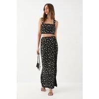 Dazzling sequin embellishment in a celestial pattern for head-turning glamour Luxurious velvet fabric creates rich texture and dimension Flattering midaxi length with sultry side split detail Form-fitting silhouette that contours your curves Part of a co-ord set - can be styled together or separately for versatile looks Make a statement on your next night out with this show-stopping sequin midaxi skirt from MissPap. The eye-catching celestial sequin pattern catches and reflects light as you move, ensuri...