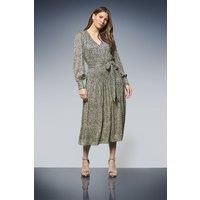 Striking animal print midi dress with elegant metallic finish for added glamour Flattering V-neckline frames the dcolletage beautifully Statement balloon sleeves with fitted cuffs create a dramatic silhouette Tie waist detail accentuates the figure and adds feminine definition Flowing midi length with gentle pleating for graceful movement This captivating Animal Metallic Tie Waist Midi Dress from Wallis combines sophistication with wild charm. The wrap-effect bodice creates a flattering silhouette while the tie waist cinches perfectly to enhance your natural curves. Perfect for evening soires, style with strappy metallic heels and statement earrings for a refined nightlife look. The flowing midi length offers both comfort and elegance as you move from dinner to drinks. For cooler evenings, layer with a tailored blazer without compromising on style. This versatile piece transitions effortlessly from formal occasions to more relaxed gatherings with friends-simply switch your accessories ...