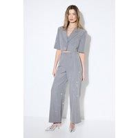 Stunning embellished detailing adds a touch of glamour to these straight leg trousers High-waisted design creates a flattering silhouette Straight leg cut offers a contemporary and versatile fit Sleek side seam enhances the elongated leg line Stretchy fabric blend ensures comfort whilst maintaining shape throughout the night Make a statement at your next night out with these eye-catching embellished straight leg trousers from Misspap. The dazzling embellishments catch the light as you move, ensuring all...
