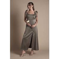 Discover a dress for all occasions and reach for it on repeat. With delicate lace trims, feminine prints and flattering silhouettes, find your perfect style to take you from day to night. From versatile midis to maxi and mini lengths, your perfect dress is only a click away. Style: Petite Satin Tie Shoulder Midi Dress. Ideal for: Bridesmaids. Design: Tie. Model wears size UK 10 and is 5' 3" tall. | Oasis Women's Petite Satin Tie Shoulder Midi Bridesmaid Dress in Olive | Size: 8