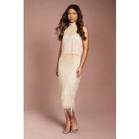 Luxurious fringe embellishment cascades throughout the midi skirt for captivating movement Elegant high-waisted design creates a flattering silhouette Sophisticated midi length falls below the knee for a refined evening look Delicate glass bead detailing adds subtle sparkle and dimension Fully lined for comfort and structure whilst maintaining the skirt's fluid drape Make a statement at your next special occasion with this show-stopping fringe embellished midi skirt from Coast. The dramatic cascading fringe creates mesmerising movement with every step, whilst the sleek high-waisted cut accentuates your natural silhouette. Style with the matching high-neck sleeveless top as shown for a coordinated ensemble that radiates sophistication, or pair with a crisp silk blouse for a contrasting textural effect. Complete your look with metallic strappy heels and minimal jewellery to let the skirt's intricate detailing take centre stage. Perfect for weddings, cocktail parties or evening galas, thi... - Manufacturers part number: Coast_5045772550143