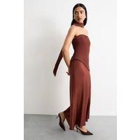 Strapless Structured Bodice Satin Midi Dress | Warehouse Women's Strapless Structured Bodice Satin Midi Dress in Chocolate | Size: 10 - Manufacturers part number: Warehouse_5045772633129