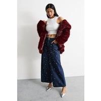 Hotfix Embellished High Waisted Wide Leg Denim Jean | Warehouse Women's Hotfix Embellished High Waisted Wide Leg Denim Jeans in Indigo | Size: 8 - Manufacturers part number: Warehouse_5045772692171