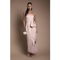 Elegant bandeau neckline with sophisticated one-shoulder design Statement bow detail adds a contemporary twist to this classic silhouette Sleek crepe fabric offers a smooth drape and refined finish Floor-length maxi design with a graceful wrap-effect skirt Streamlined fit creates a flattering, elongated silhouette perfect for formal occasions This exquisite Coast bridesmaid dress combines timeless elegance with modern detailing. The bandeau bodice transitions beautifully into a one-shoulder neckline, creating a sophisticated asymmetric look that complements the bridal party aesthetic. The statement bow adds a touch of drama whilst maintaining refined elegance, perfect for walking down the aisle with confidence. The crepe fabric drapes beautifully, creating clean lines that move gracefully as you celebrate the special day. Style with delicate drop earrings and strappy heels as shown for a coordinated bridal party look. The wrap-effect skirt detail adds subtle interest whilst maintaining...
