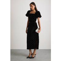 Luxurious velvet fabric with all-over embellishment for a dazzling finish Elegant pencil silhouette with a flattering midi length Side split detail adds movement and sophistication Fully lined for comfort and a smooth fit Versatile design perfect for evening events and special occasions Make a statement at your next soire with this exquisite Warehouse velvet embellished pencil skirt. The sumptuous texture combined with sparkling embellishments creates a look that captures attention without overwhelming. Style with a simple square-neck top as shown for a contemporary two-piece effect, or pair with a crisp blouse for more formal gatherings. The midi length and sleek pencil shape offer a refined silhouette that works beautifully with strappy heels and a metallic clutch. This skirt transitions effortlessly from cocktail parties to winter weddings, making it a versatile addition to your occasion wardrobe. The side split detail ensures you can move with grace throughout the evening, while th... - Manufacturers part number: Warehouse_5045772809647